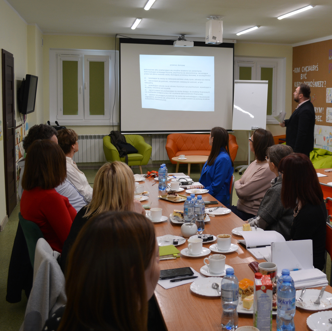 Szkolenie przeprowadził Pan Kamil Miśtal, absolwent Wydziału Prawa i Administracji Uniwersytetu Łódzkiego, trener, specjalista w zakresie przeciwdziałania przemocy domowej.